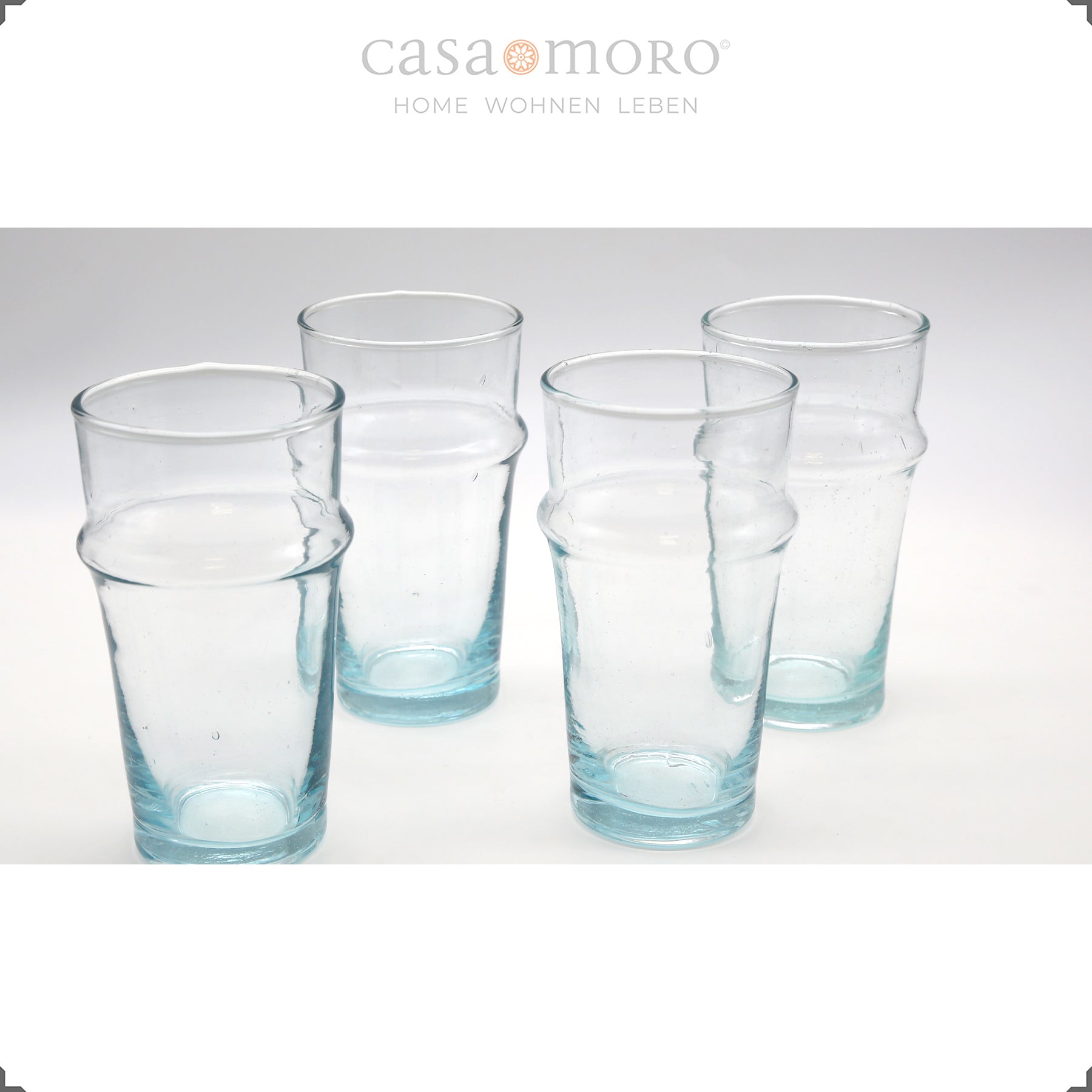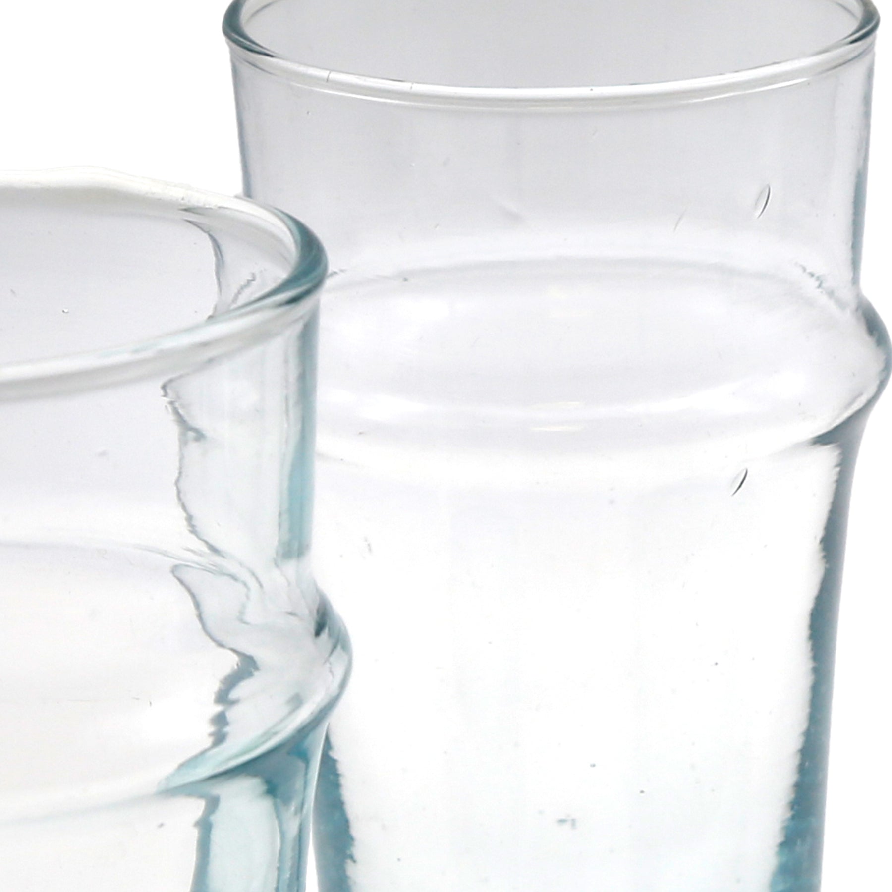 Ein Gläser-Set aus aufbereitetem Glas, das durch Qualität, Haptik und Vielseitigkeit begeistert – mundgeblasen, transparent und pflegeleicht.