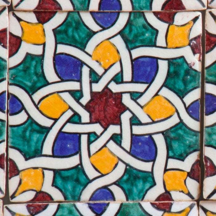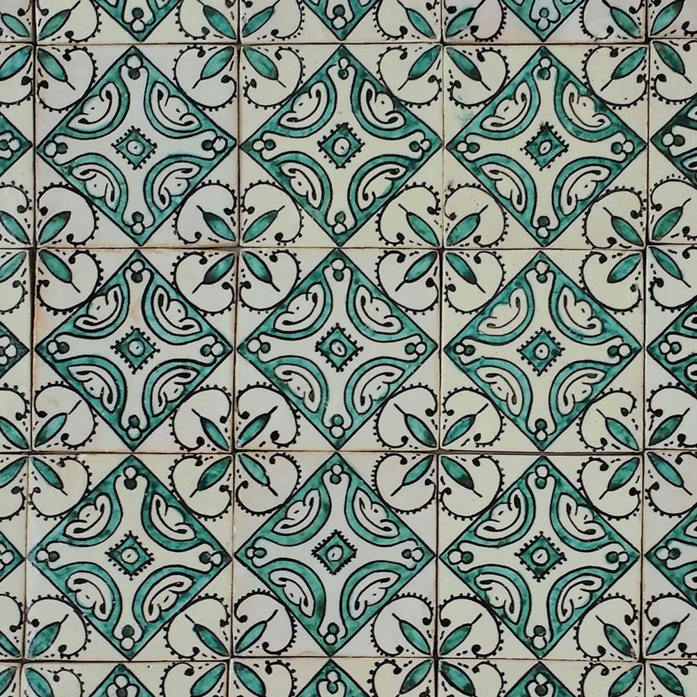 Unsere handbemalten Fliesen zeigen die ganze Vielfalt traditioneller marokkanischer Ornamentik. Von geometrischen Sternmustern über florale Blütenmotive bis hin zu geschwungenen Linien und Flechtbändern entstehen dekorative Zierfliesen mit unverwechselbarem Charakter. Typisch für diese Keramikfliesen sind die feinen dunklen Linien, die jedes Detail umranden und den Ornamenten ihre klare Struktur verleihen.