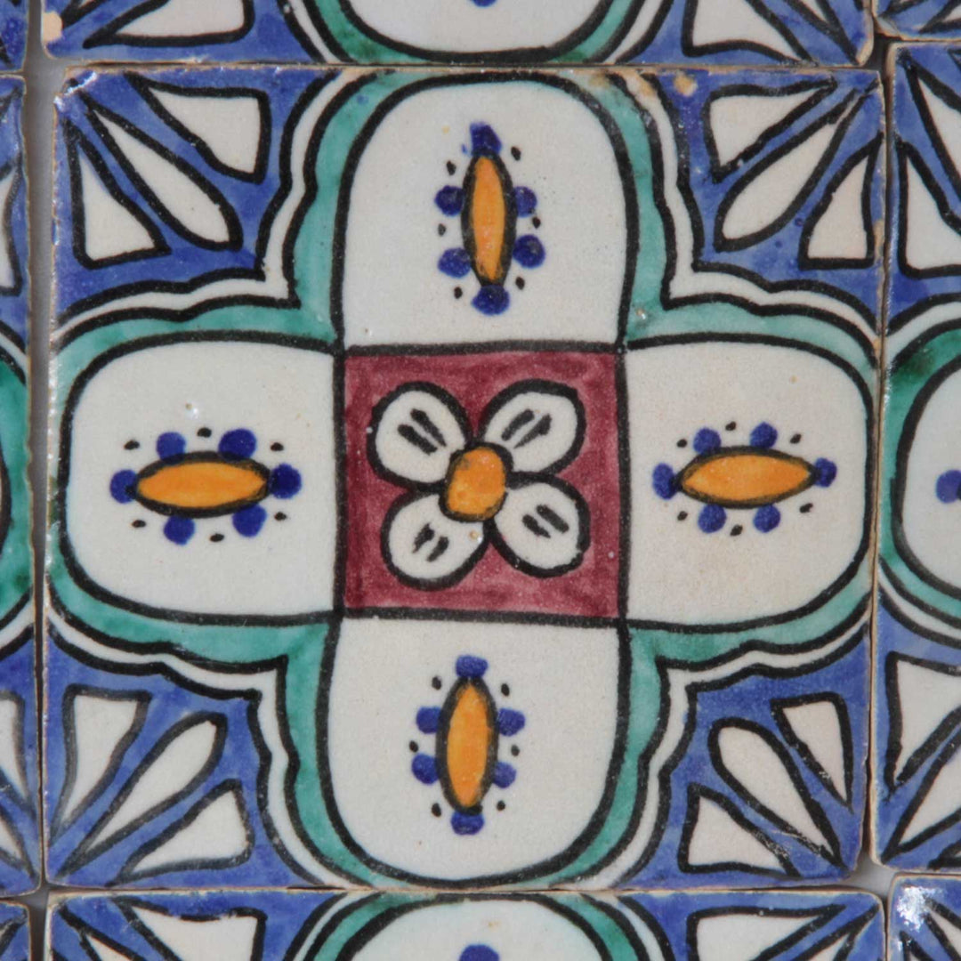 Da jede Keramikfliese von Hand bemalt wird, gleicht keine Fliese exakt der anderen. Kleine Unterschiede in Farbe, Glasur oder Maß sind ein natürlicher Bestandteil traditioneller Handarbeit und unterstreichen die Authentizität dieser marokkanischen Fliesenkunst.