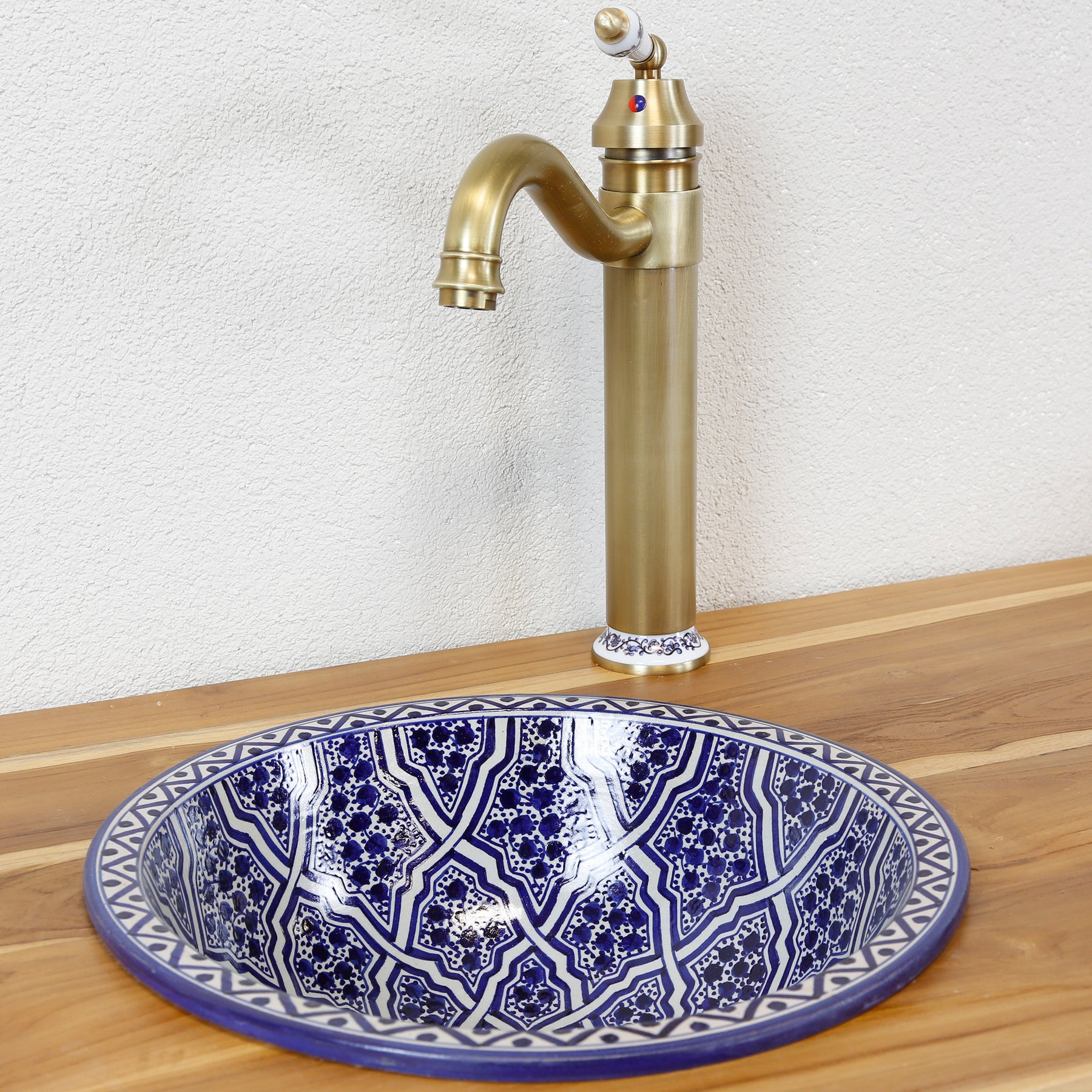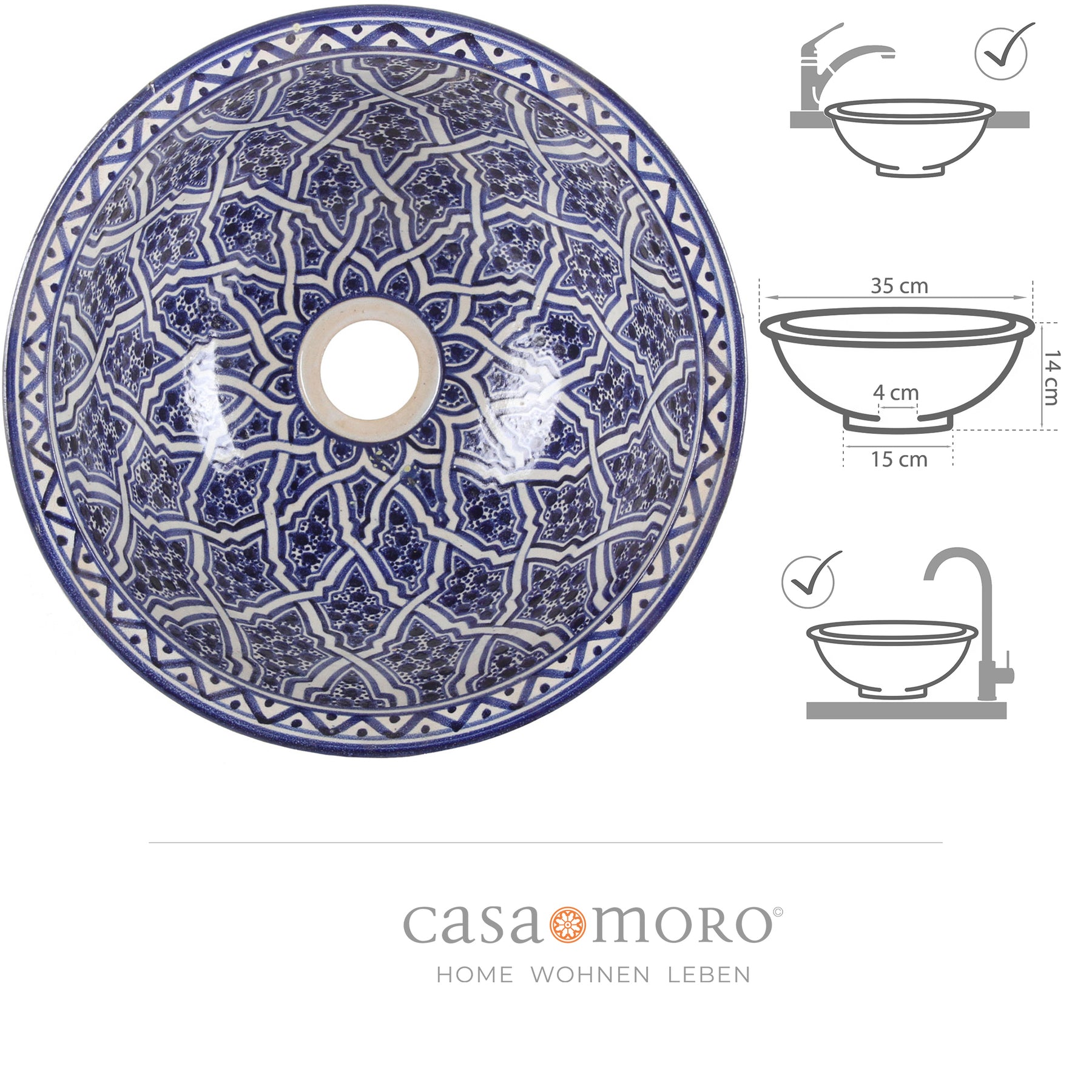 Ob im stilvollen Badezimmer oder im Gäste-WC – dieses handgefertigte Waschbecken ist mehr als nur ein funktionales Element. Es bringt marokkanisches Flair und künstlerischen Ausdruck in deinen Alltag. Auf einem Holz- oder Naturstein-Waschtisch kommt das Design besonders schön zur Geltung.