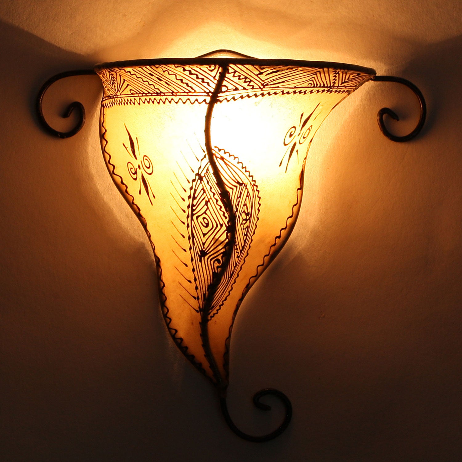 Orientalische handbemalte Henna-Leder-Wandlampe aus Marokko
