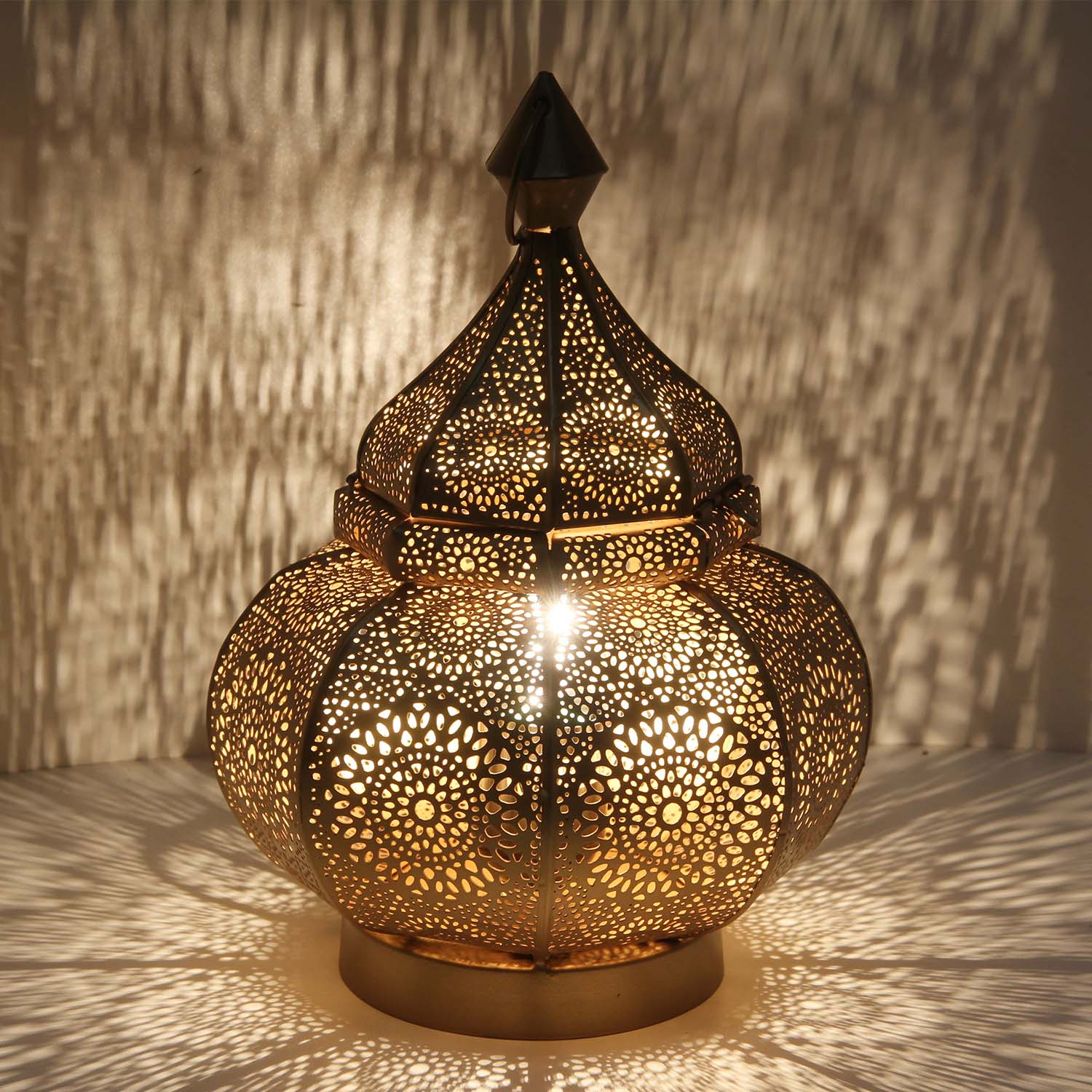 Verzaubern Sie in Ihren Wohnbereich mit unseren Lampen in eine geheimnisvolle orientalische Atmosphäre! Die Spitze lässt sich öffnen um das Leuchtmittel zu installieren. Diese Lampe ist nur für die elektrische Beleuchtung geeignet.