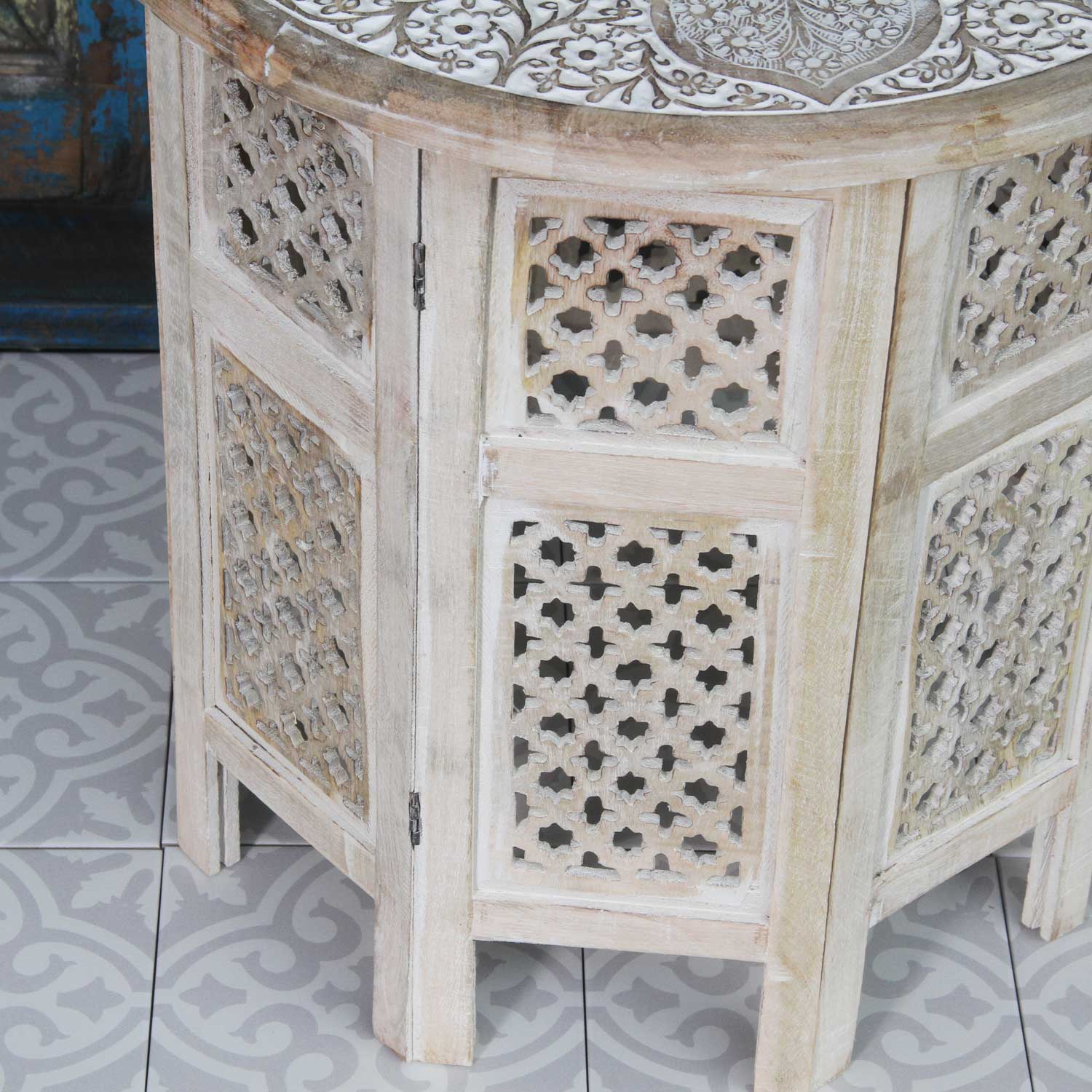 - Material: Mangoholz mit orientalischer Schnitzerei