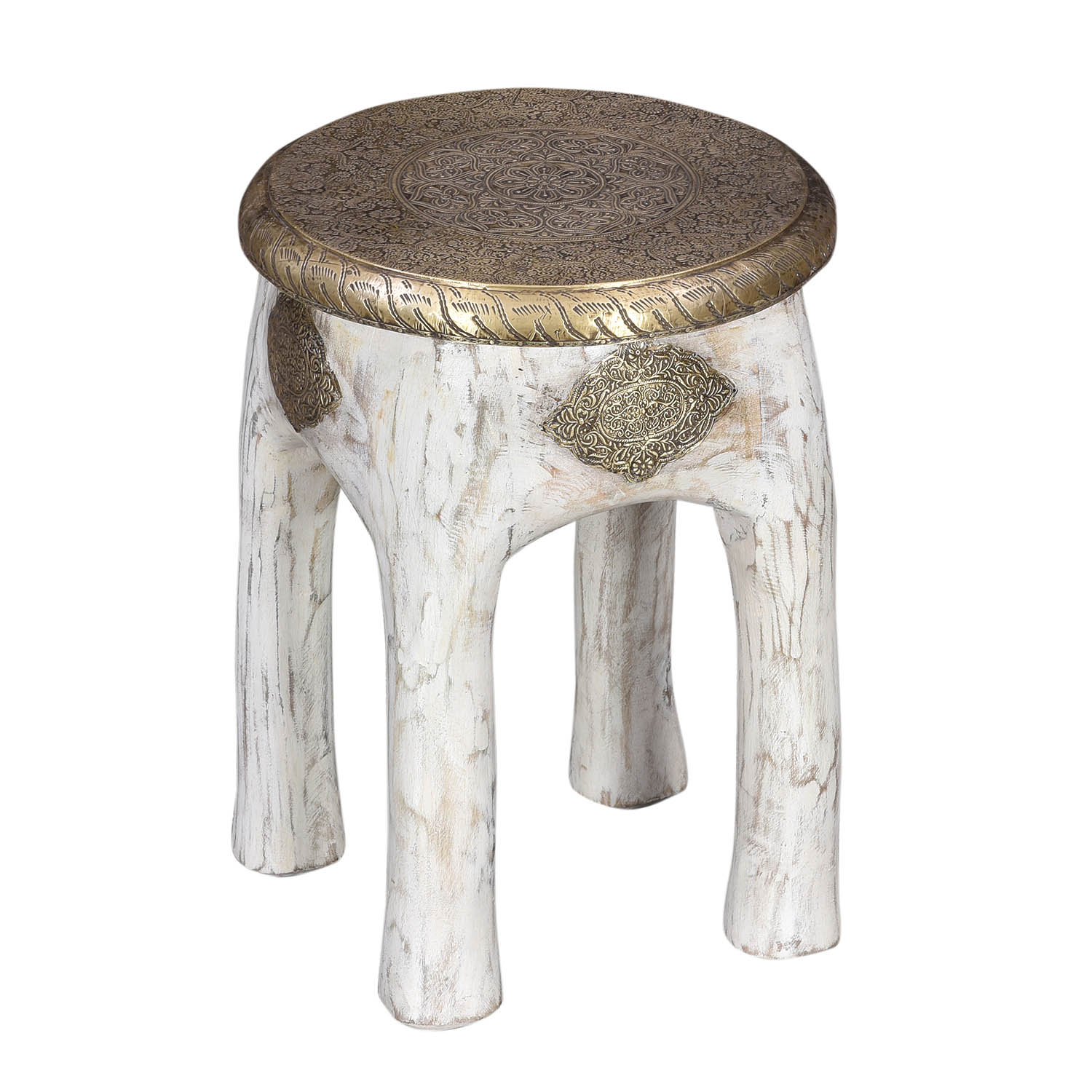Orientalischer Holzhocker Hiya mit Messingapplikationen.