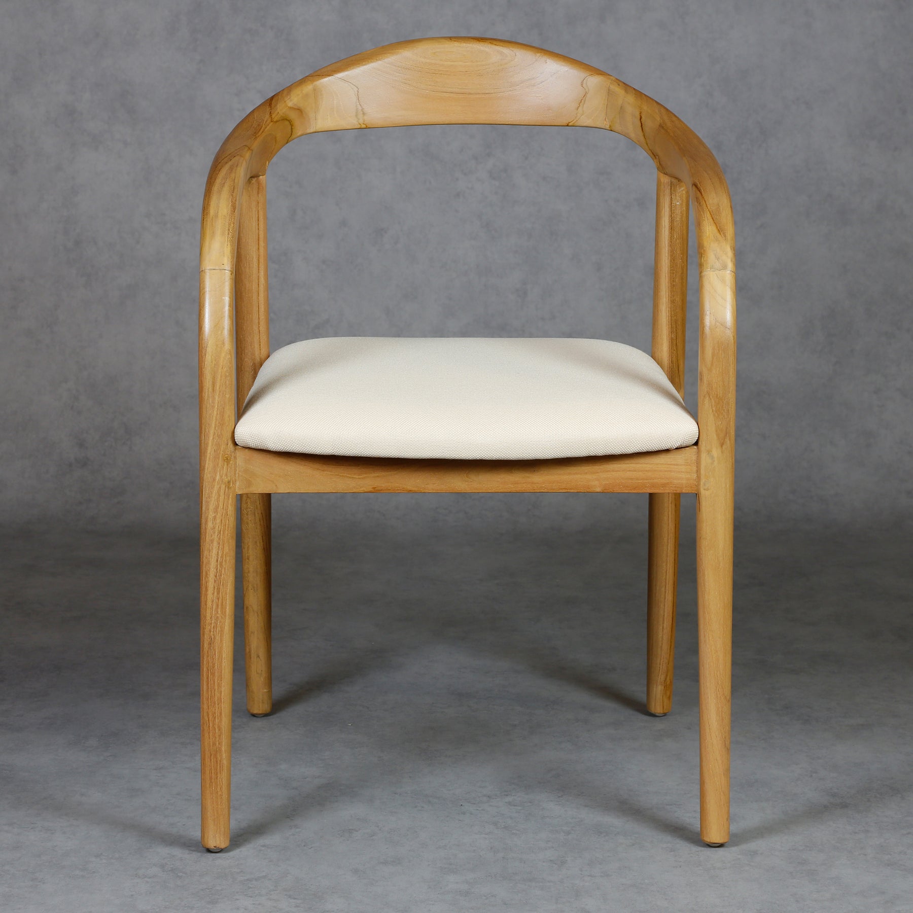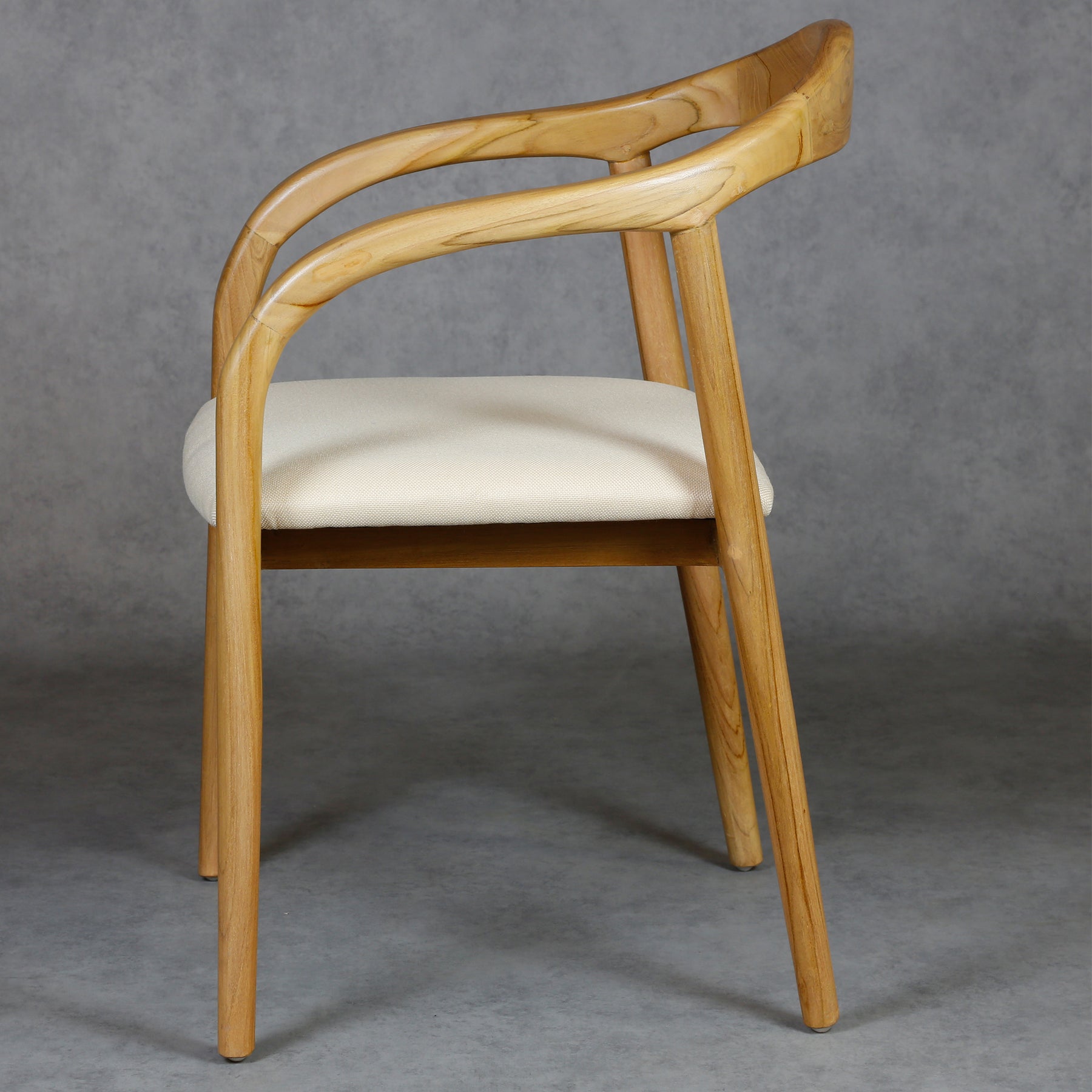 Esszimmerstuhl mit Lehne: Ergonomisches Design mit Seiten- und Rückenlehne. Gefertigt aus massivem Teak, ist dieser Stuhl vielseitig einsetzbar – ob als Essstuhl am Esstisch, als Polsterstuhl im Esszimmer, im Wartezimmer oder im Schlafzimmer.